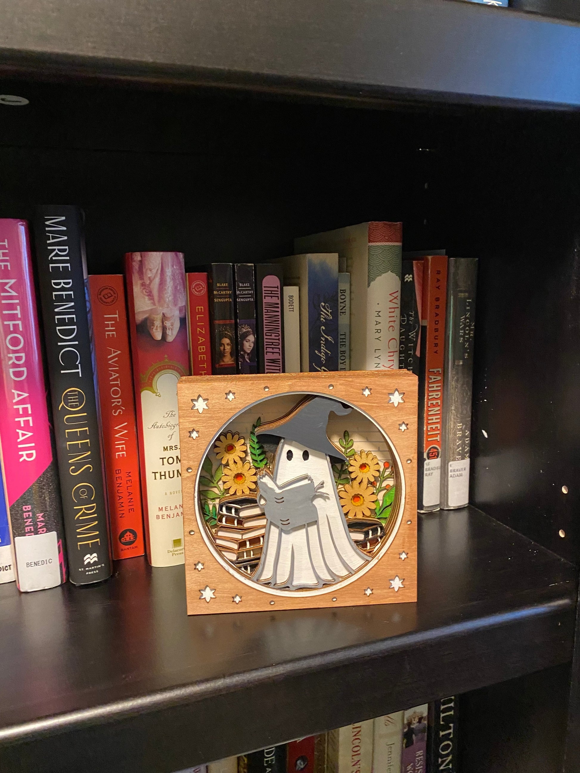 14-Layer Ghost Shelf Sitter – Hand-Painted & Clear-Coated Halloween Décor (5.5”)
