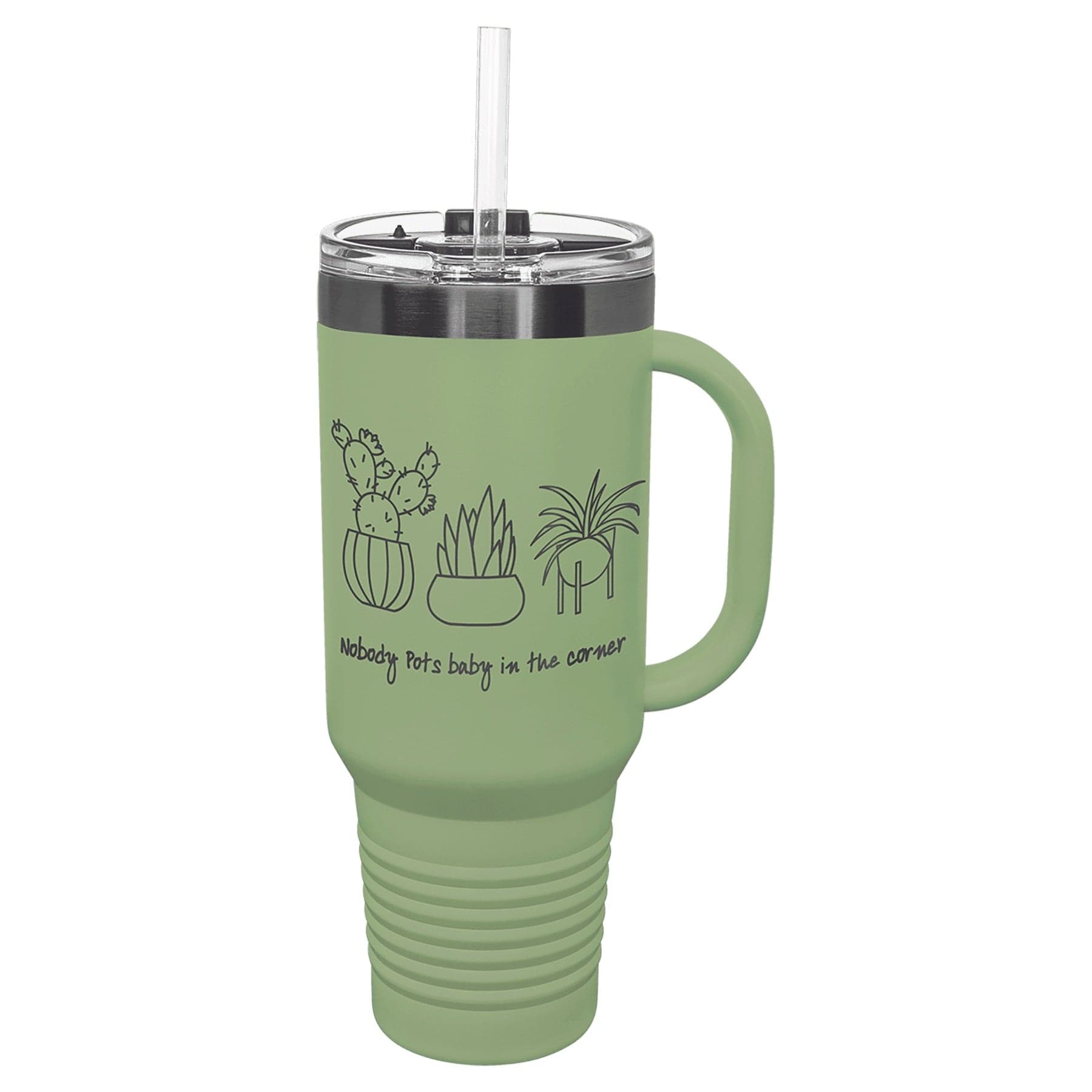 Hydration meets high style in our best-selling 40 oz Custom Travel Mug – the must-have drinkware for busy mornings, road trips, and weekend adventures. Designed for those who live life on-the-go, this insulated stainless steel mug features a durable powder-coated finish that engraves beautifully with bold Ghost Black designs.