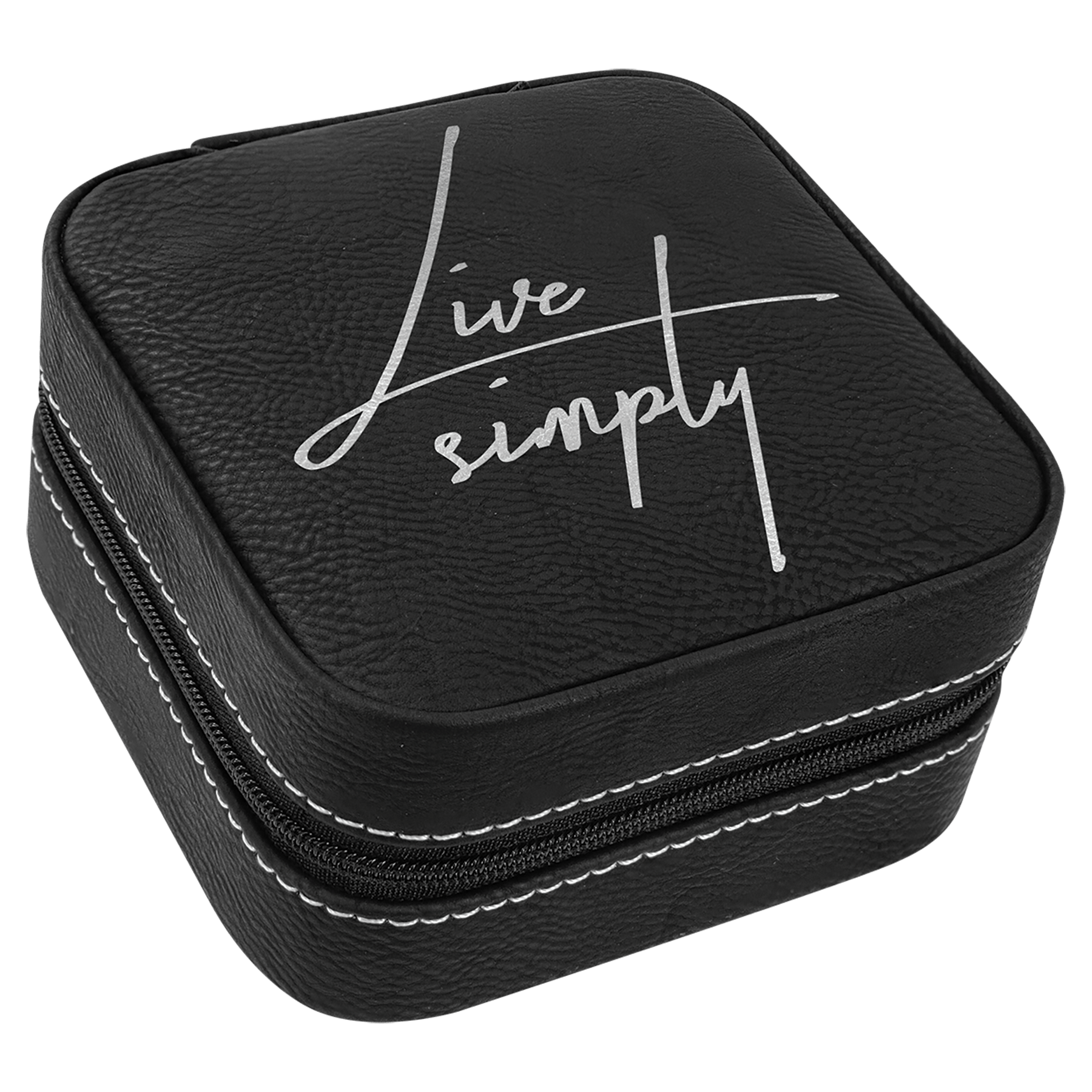 This compact travel jewelry box is made of faux leather, making it perfect for your suitcase or bag. With secure compartments for storing chains, rings, and earrings, it is available in both tan and black lining. Personalize the front, back, or both to create a unique and thoughtful custom gift.