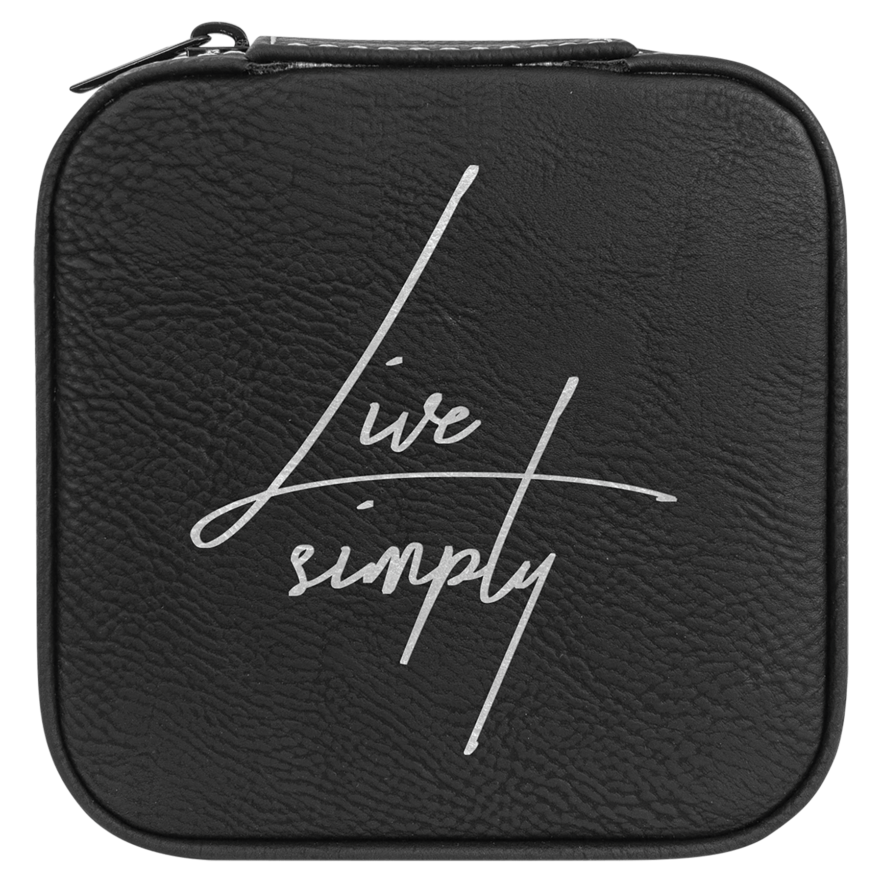 EngraveElite Vegan Leather Travel Jewelry Box - Black, Black|Silver