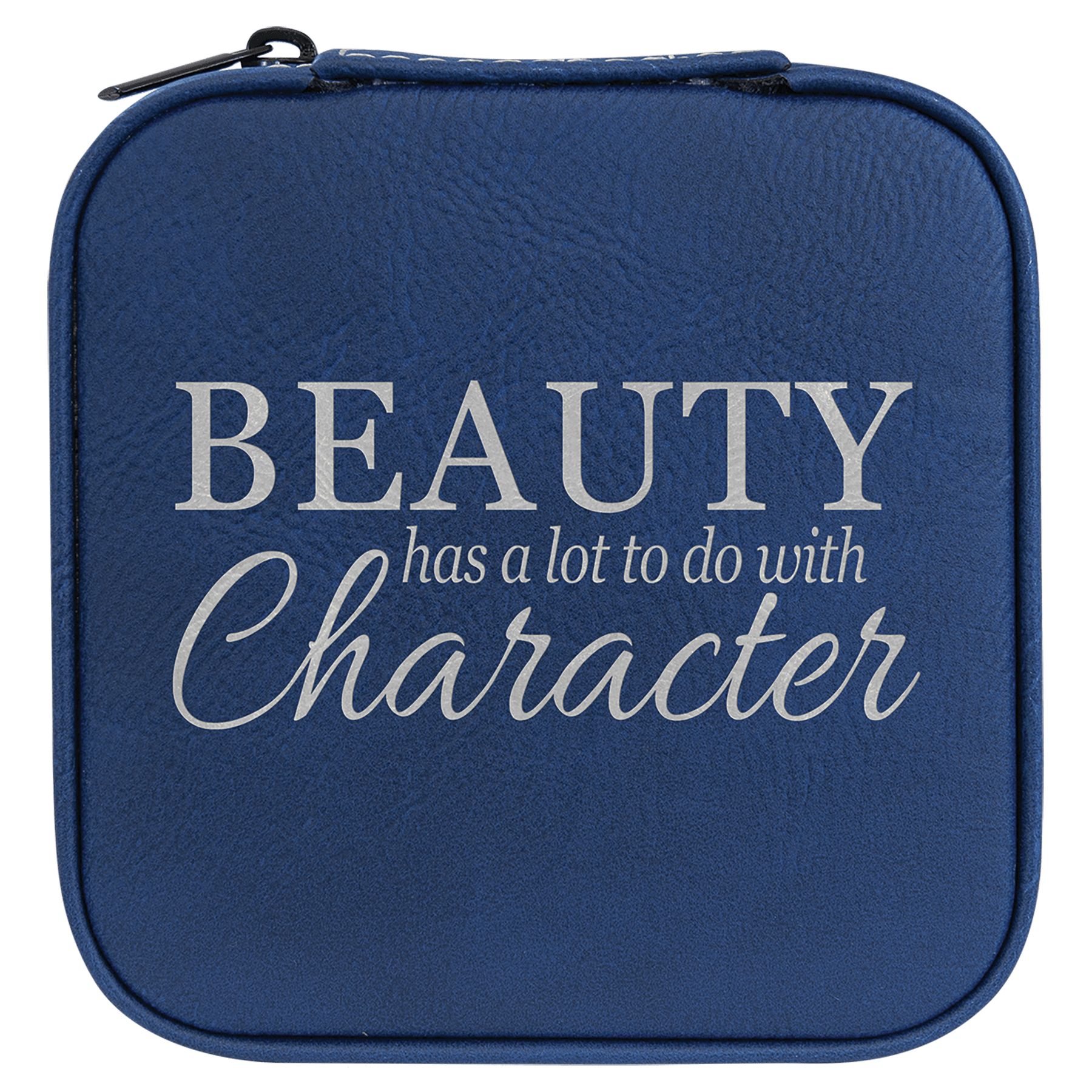 EngraveElite Vegan Leather Travel Jewelry Box - Black, Blue|Silver