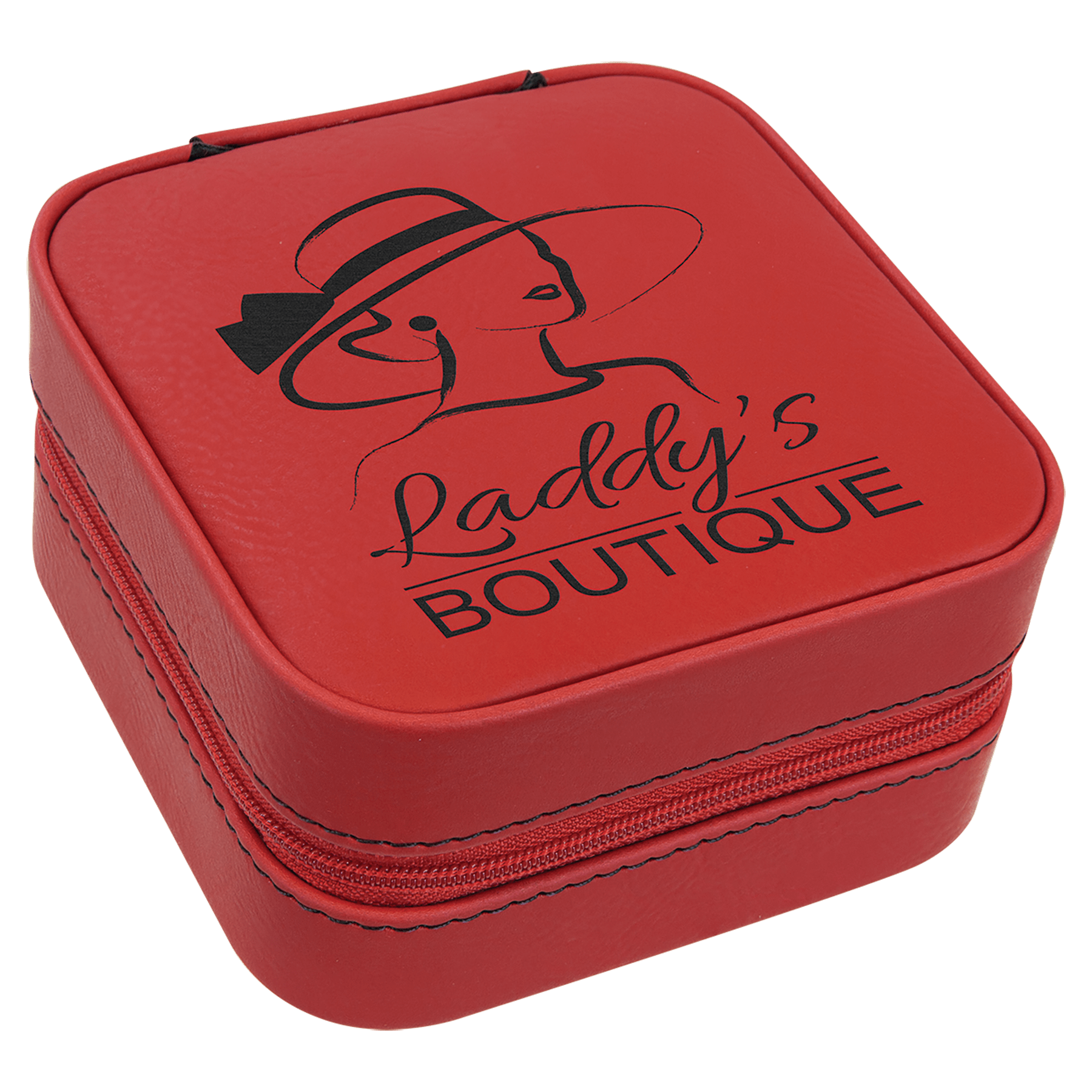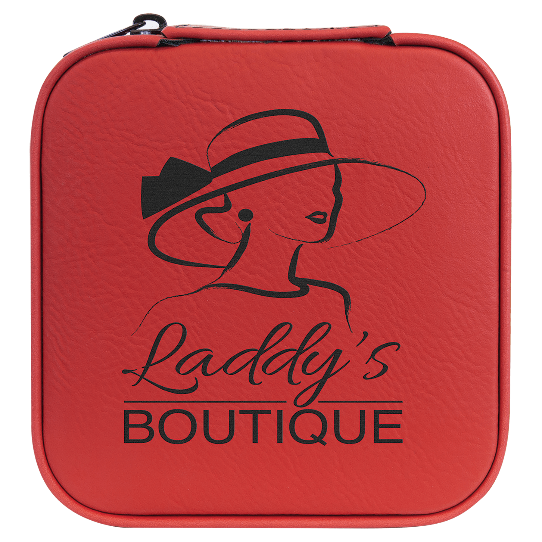 EngraveElite Vegan Leather Travel Jewelry Box - Black, Red